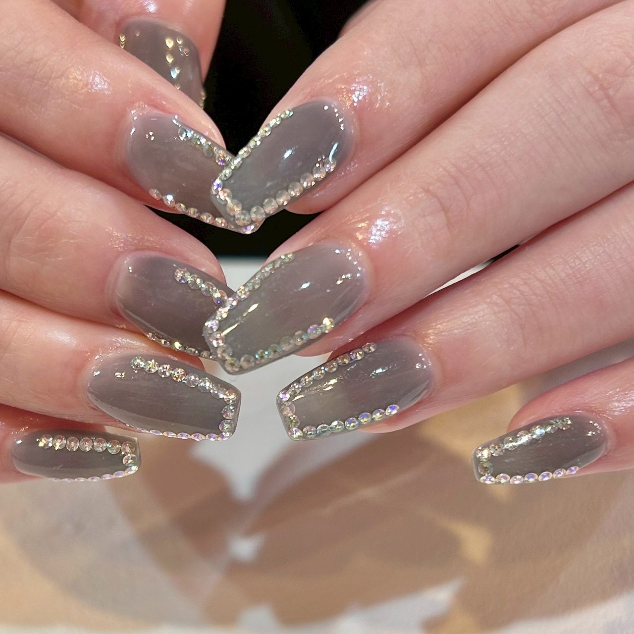 - ワンカラー フレンチ 変形フレンチ ストーン ラインストーン パーツ 囲み
