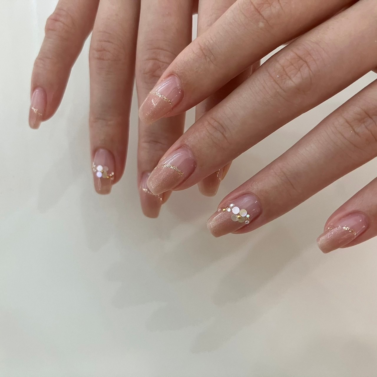 【フレンチフラワーネイル】石川 COLOR ピンク ベージュ ARTTYPE フレンチ ラメ TASTE シンプル スウィート エレガント SCENE オフィス フレンチはお手元がより綺麗にみえるのでオススメです