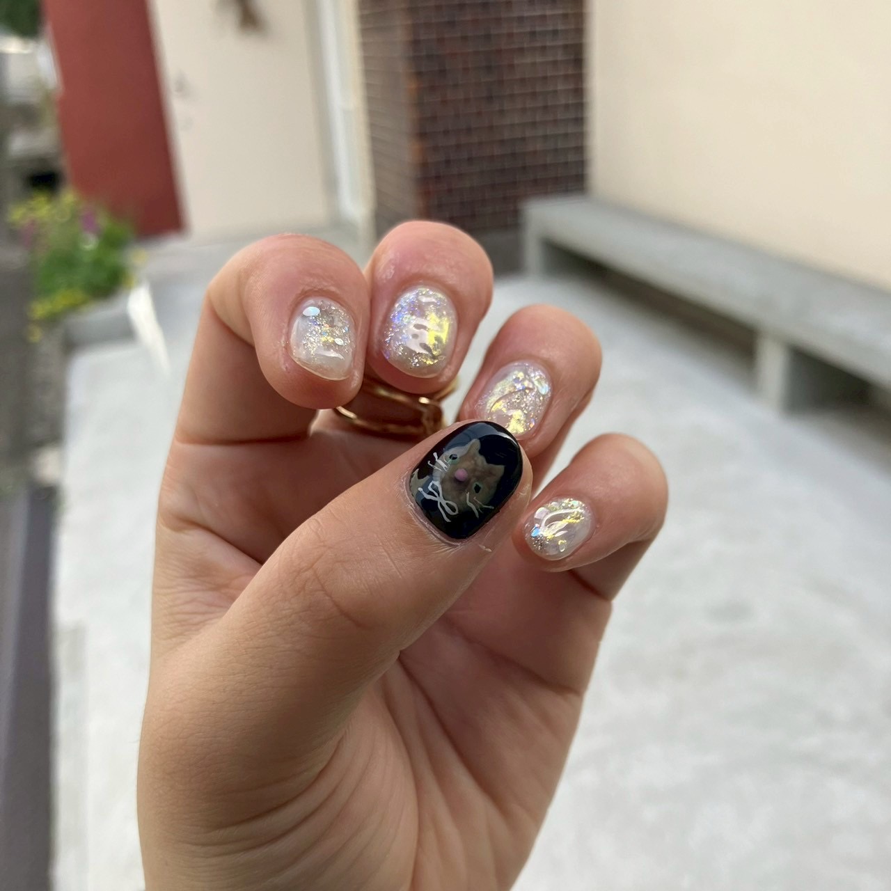 手描きのマーブル猫ベースが黒でもデザインがあると合わせやすいです